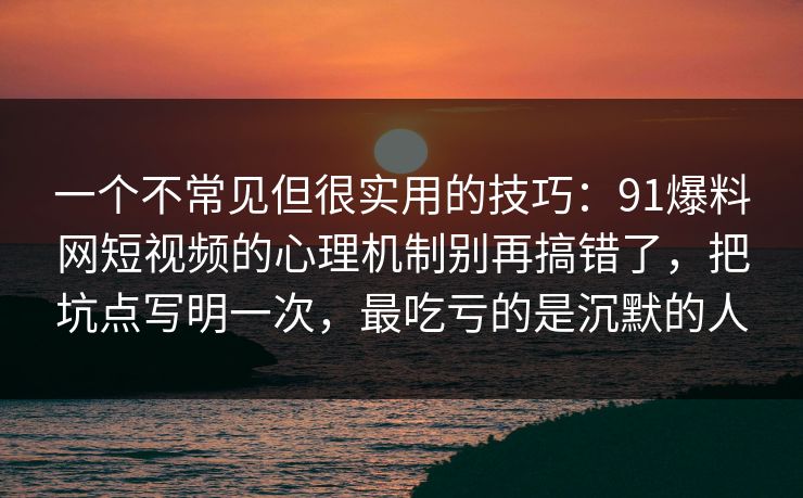 一个不常见但很实用的技巧:91爆料网短视频的心理机制别再搞错了,把坑点写明一次,最吃亏的是沉默的人