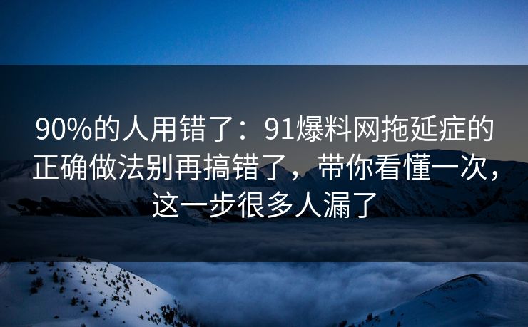 90%的人用错了:91爆料网拖延症的正确做法别再搞错了,带你看懂一次,这一步很多人漏了