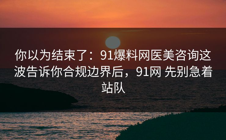 你以为结束了:91爆料网医美咨询这波告诉你合规边界后,91网 先别急着站队