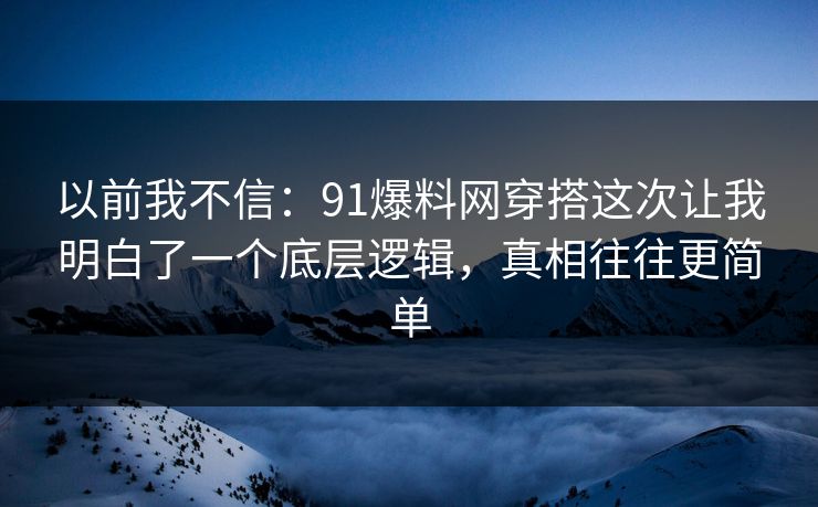 以前我不信:91爆料网穿搭这次让我明白了一个底层逻辑,真相往往更简单