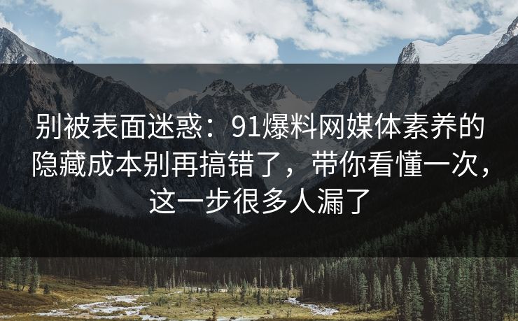 别被表面迷惑:91爆料网媒体素养的隐藏成本别再搞错了,带你看懂一次,这一步很多人漏了