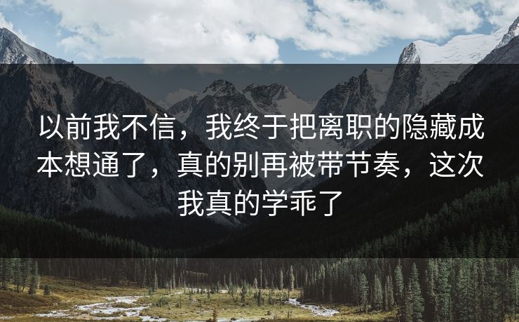 以前我不信,我终于把离职的隐藏成本想通了,真的别再被带节奏,这次我真的学乖了