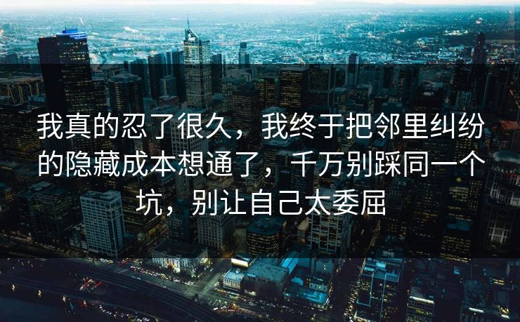 我真的忍了很久,我终于把邻里纠纷的隐藏成本想通了,千万别踩同一个坑,别让自己太委屈