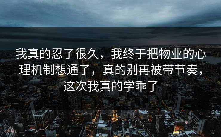 我真的忍了很久,我终于把物业的心理机制想通了,真的别再被带节奏,这次我真的学乖了